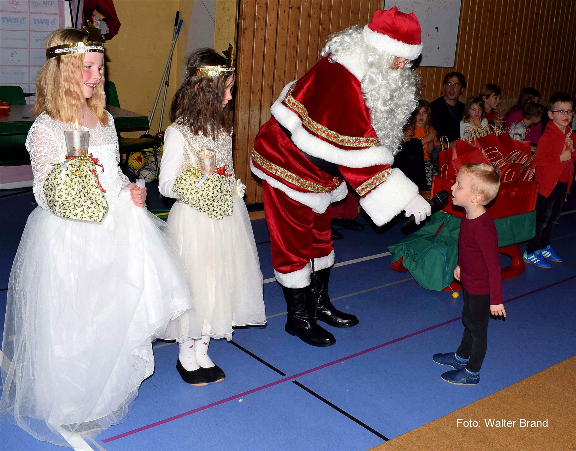 Über einhundertdreißig Jahre ist die SG Leutershausen in Bewegung, dies wurde bei den einzelnen Darbietungen am SGL Familientag wieder einmal besonders verdeutlicht. Toll, dass wir uns in diesem Jahr alle treffen und wiedersehen können, so begrüßte die zweite Vorsitzende Frauke Kühnl, die Kinder mit ihren Eltern und Großeltern, in der Heinrich - Beck Halle. Den musikalischen Auftakt machte der Nachwuchs vom Ev. Posaunenchor. Rund sechshundertsechzig Kinder und Jugendliche sind bei der SG Leutershausen in den einzelnen Sport Gruppen engagiert, wobei sehr viele gekommen waren, um diesen Nachmittag bei sportlicher Bewegung und im Spiel mit zu gestalten. Zu Beginn begrüßte die zweite Vorsitzende Frauke Kühnl, alle großen und kleinen Gäste in der Heinrich - Beck Halle in Leutershausen. Ihre besonderen Willkommensgrüße übermittelte sie den Ehrenmitgliedern, Bürgermeister Ralf Gänshirt und den anwesenden Gemeinderäten. Großen Spaß hatten am Familientag die Handball - Minis, die ihr Können unter der Leitung von Susanne Otterbeck, auf den Bänken, mit Reifen und den Hütchen zeigten. Viel Beifall gab es auch für die "Zumba" Kinder, die unter der Leitung von Marlen Ugiomoh flotte Tänze wie "The Passenger", "Dance, Dance, Dance" und "Se Prendiò" zeigten. Insgesamt fünf Trainerinnen sind für die Leichtathletik der Kinder im Verein verantwortlich. Brita Schmitt zeigte mit ihrer Kindergruppe, welche Übungen man beim Weitsprung machen kann. Die Eltern-Kinder-Turngruppe, unter der Regie von Melanie Hofmann, führte mit ihren Kindern vor, wie man spritzig zu Hause in der eigenen "Weihnachtsbäckerei" Plätzchen fertigt. Dabei hatten vor allem die Kinder sehr viel Freude. Weitere Programmpunkt war das Gerätturnen bei dem Elemente am Boden mit Akrobatik von Franziska Maier gezeigt wurde, die Rhythmische Tanzdarbietung mit dem Lied von "Tante Rita" und die Darbietung der SGL Tanzmäuse, die auf die Melodie "Matratze die Katze" tanzten. Zeichen des Friedens setzten die Kinder auf dem Boden sitzend mit ihren Kerzen und dem Lied "Zünd ein Licht'' an gegen die Einsamkeit, die Gewalt, den Streit und die Gleichgültigkeit. Zünd ein Licht an für die Gerechtigkeit, lass es lodern, lass es flammen für den Frieden auf der Welt. Besonderer Dank galt Oxana Klohr, die mit den Kids alles einstudiert hatte. Auch die Kinder der einzelnen Altersstufen vom Kindergarten, unter der Regie von Melanie Hofmann, begeisterten mit den Darbietungen von Elementen des Turnens in verschiedenen Schwierigkeitsgraden ihr Publikum. Viel Applaus gab es zudem für Pia Hofmann und Anna Strobach, die aus ihrem Judo Repertoire einige besondere Übungen und Griffe zeigten. Bevor die Halle verdunkelt wurde, hatten sich alle Kinder vor den Tischen versammelt. Nach dem "Schneeflockentanz" der Eltern -Kinder-Turngruppe, stieg bei verdunkelter Halle die Spannung auf das erwartungsvolle kommen vom Nikolaus. Dieser wurde unter dem Kerzenlicht von zwei kleinen Engelchen begleitet. Ein überaus freundlicher Nikolaus in seinem rot/weißen Kostüm, (es sind auch die Vereinsfarben) begrüßte die kleinen und großen Gäste, wobei er sich über die sehr gut gefüllte Sporthalle freute. Mutige Kinder trugen ein Weihnachtsgedicht vor, die vom Nikolaus besonders gelobt wurden. Besondere Freude kam in der Halle auf, als ein kleiner Knirps mit seinem Gedicht an den Heiligen St. Martin erinnerte. Für alle Kinder gab es vom Nikolaus eine Weihnachtstüte, die so manche Leckerei beinhaltete. Danach musste der Nikolaus mit seinen beiden Engelchen weiter, schließlich gibt es viele Kinder auf der Welt, die er noch besuchen muss. Mit musikalischen Klängen und viel Applaus wurde er von allen verabschiedet. Frauke Kühnl, die den Familiennachmittag mit informativen Inhalten moderierte, übermittelte abschließend ihren Dank an alle Mitwirkenden für die Gestaltung der Familienfeier. Auch bei allen Helfer:innen , dem Küchenpersonal, die für das leibliche Wohl sorgten und den Jungbläsern vom Ev. Posaunenchor unter der Leitung von Markus Binz, die gekonnt das Programm mit weihnachtliche Weisen umrahmten, dankte sie sehr herzlich.
