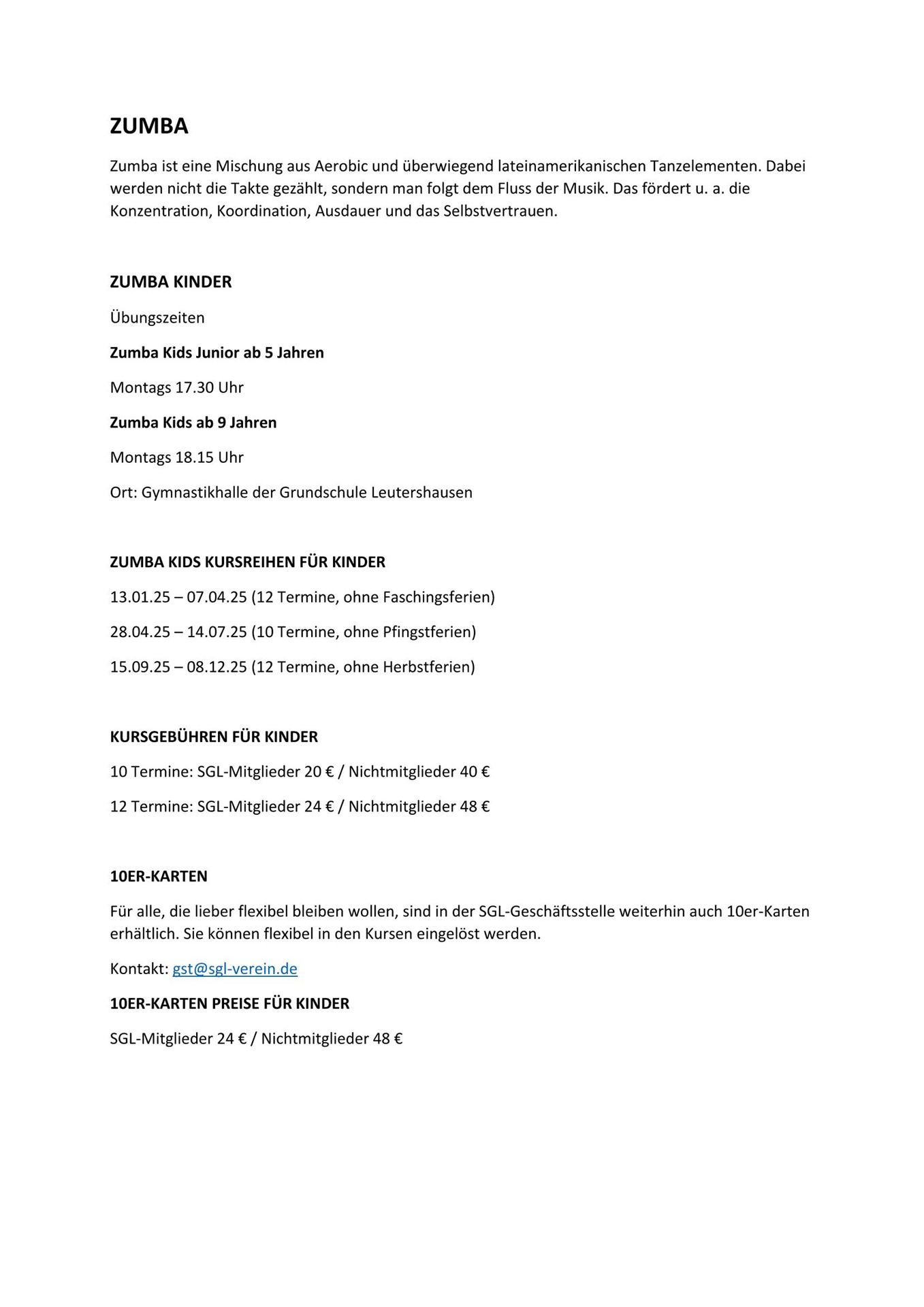Übungszeiten / Kurse