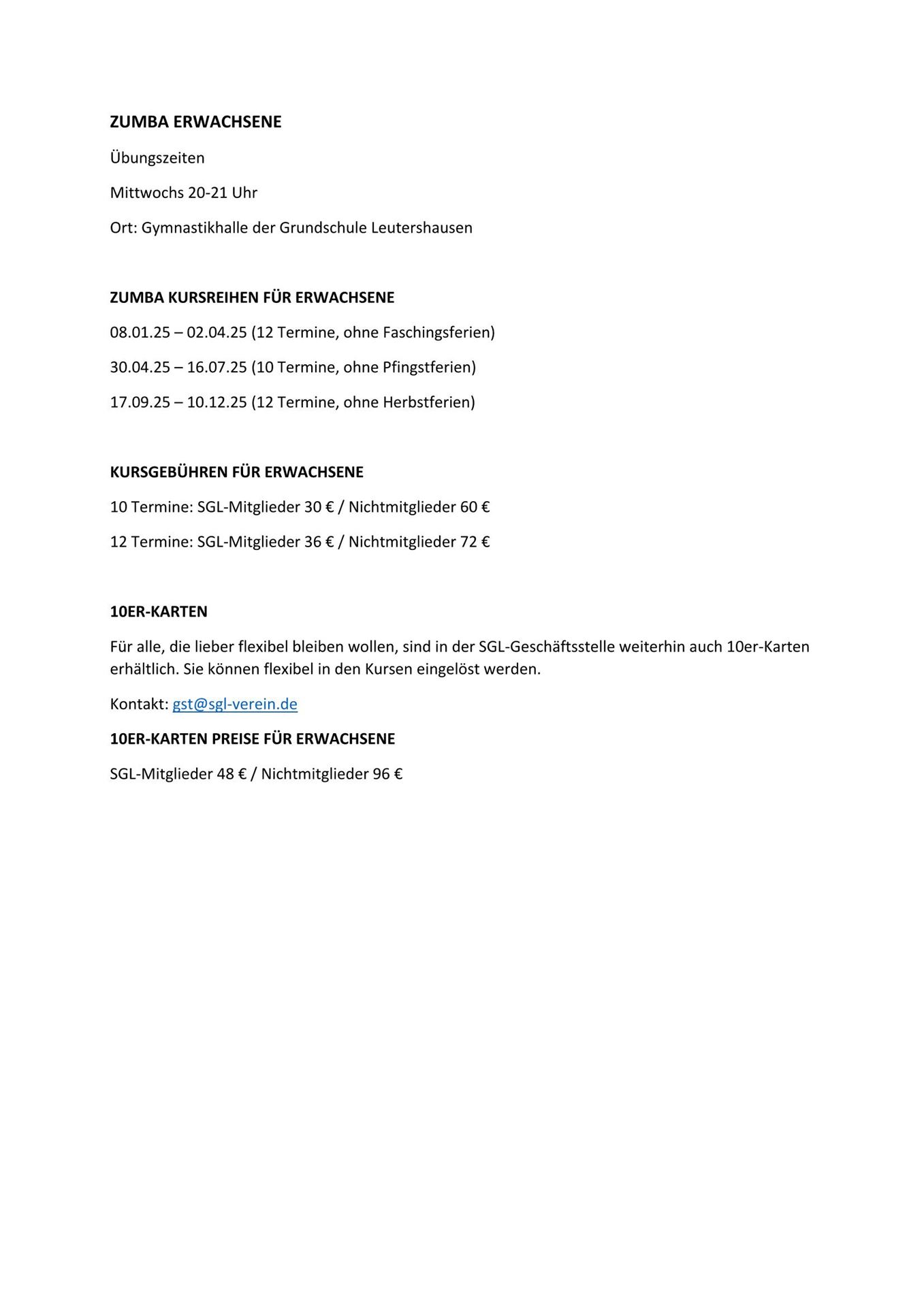Übungszeiten / Kurse